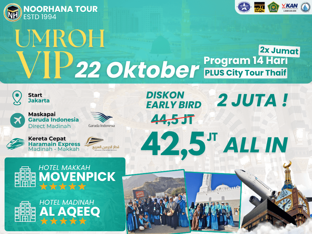 Noorhana Tour berhak menolak pendaftaran peserta yang tidak memenuhi persyaratan administratif maupun teknis.